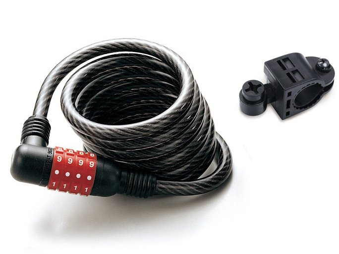 Купить Замок CL-838W/BL-888 спиральный 8 x 1500мм HANDYWAY кодовый, с держателем, уровень защиты 2, чёрный